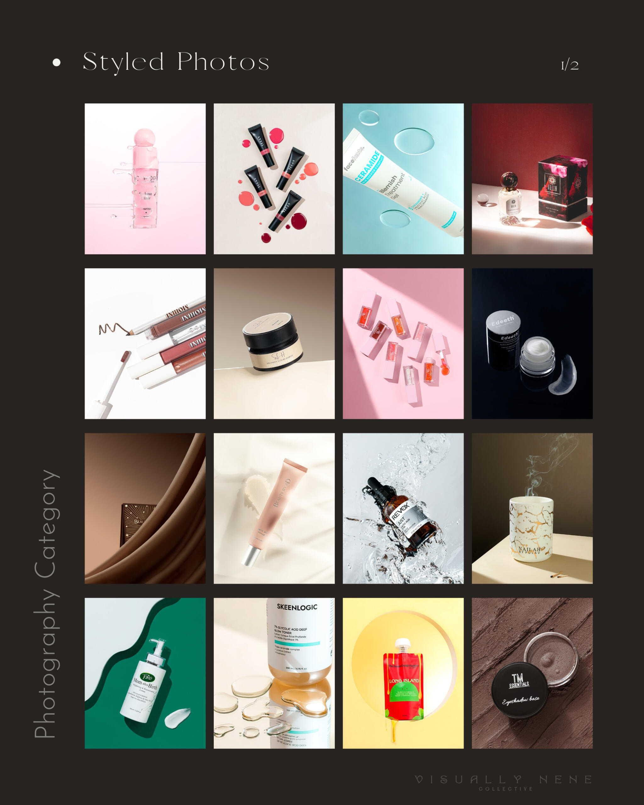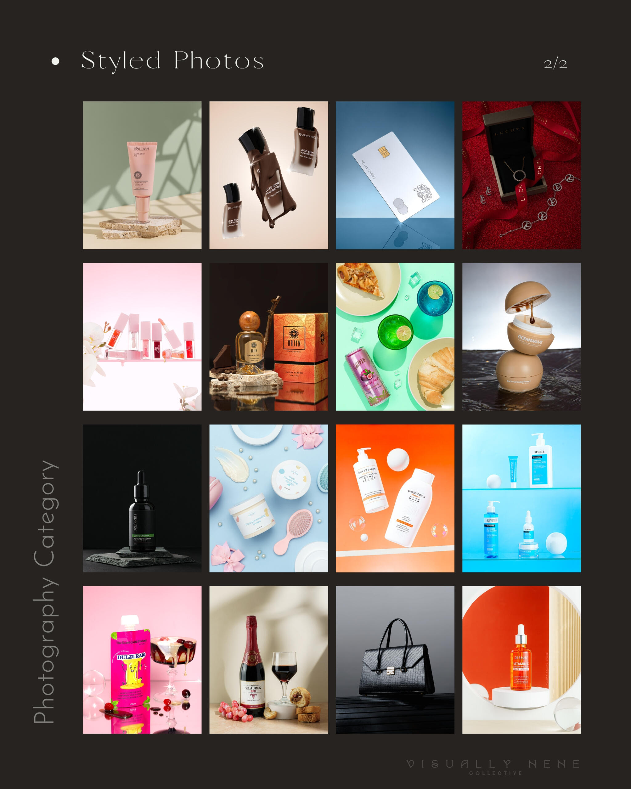 these are starting (the minimum) rates for each category. The rates increase based on styling intricacy, type of product, product-specific props, and other factors.