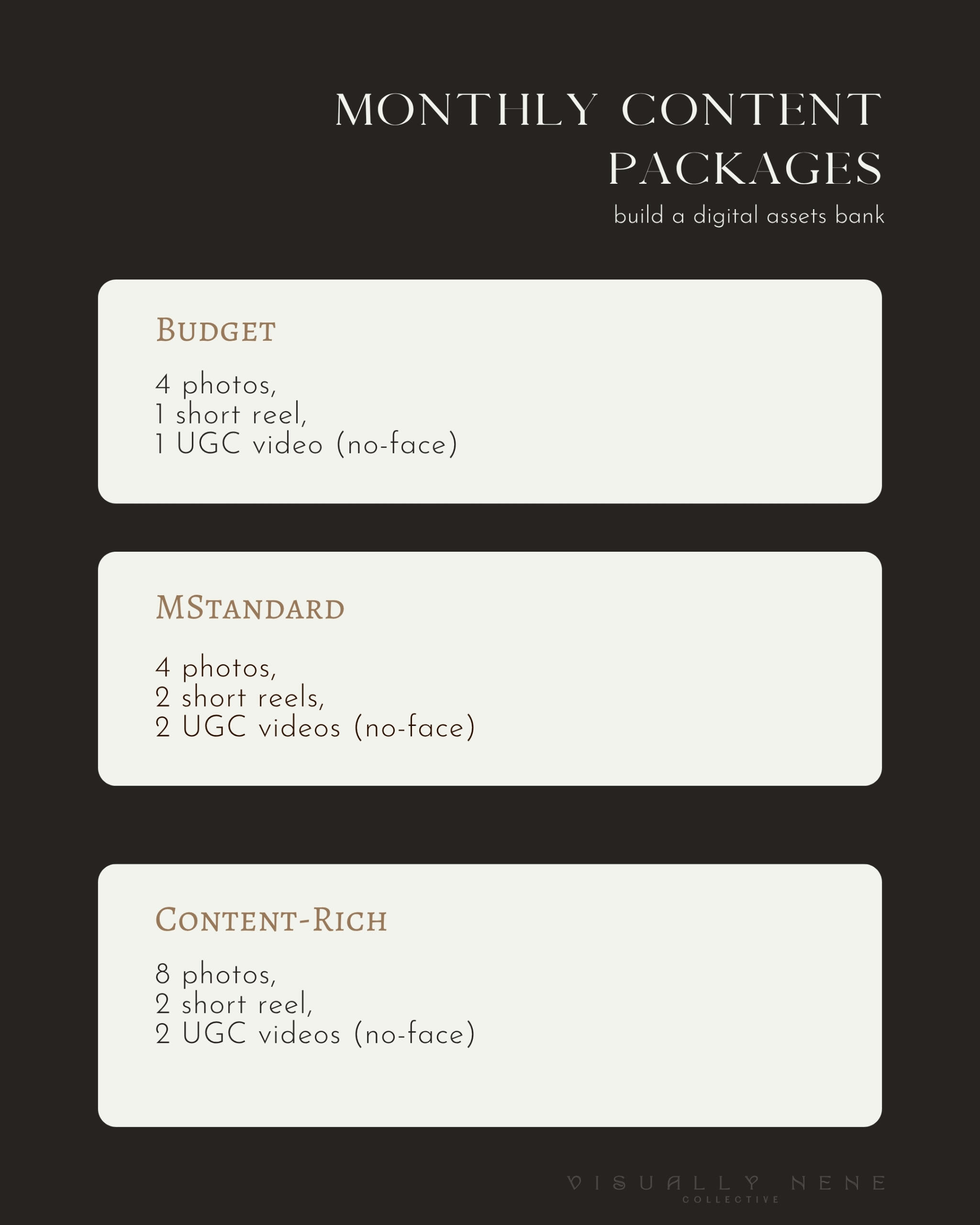 • First, select your desired package or send your custom brief based on your brand’s need to us via WhatsApp. After sharing your desired package or brief, also share a moodboard or reference(s) showing the kind of look you want to achieve for your content (this is very key).